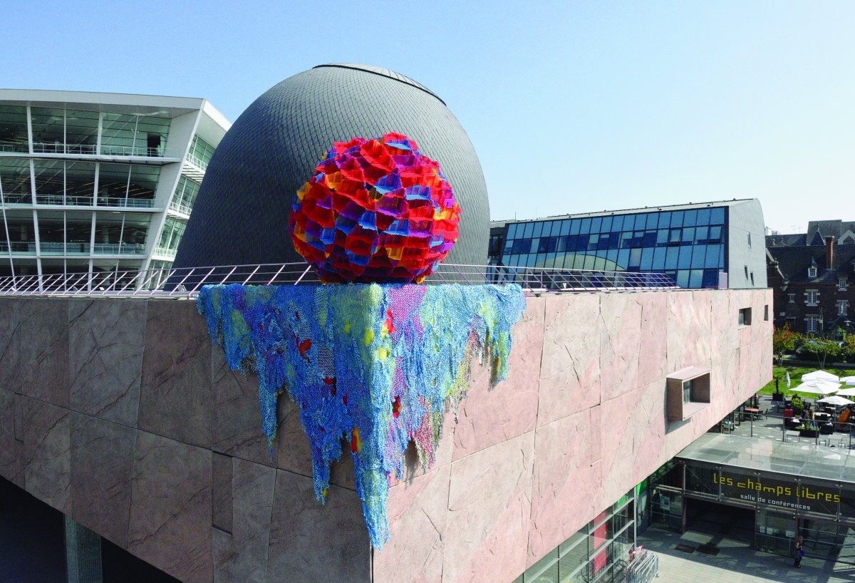 Les Champs Libres et 40mcube mènent conjointement depuis deux ans une expérimentation mettant en œuvre de façon concrète les relations entre art et architecture. En 2013, Antoine Dorotte avait ainsi incrusté une sphère d’écailles énigmatique dans le bâtiment de Christian de Portzamparc.