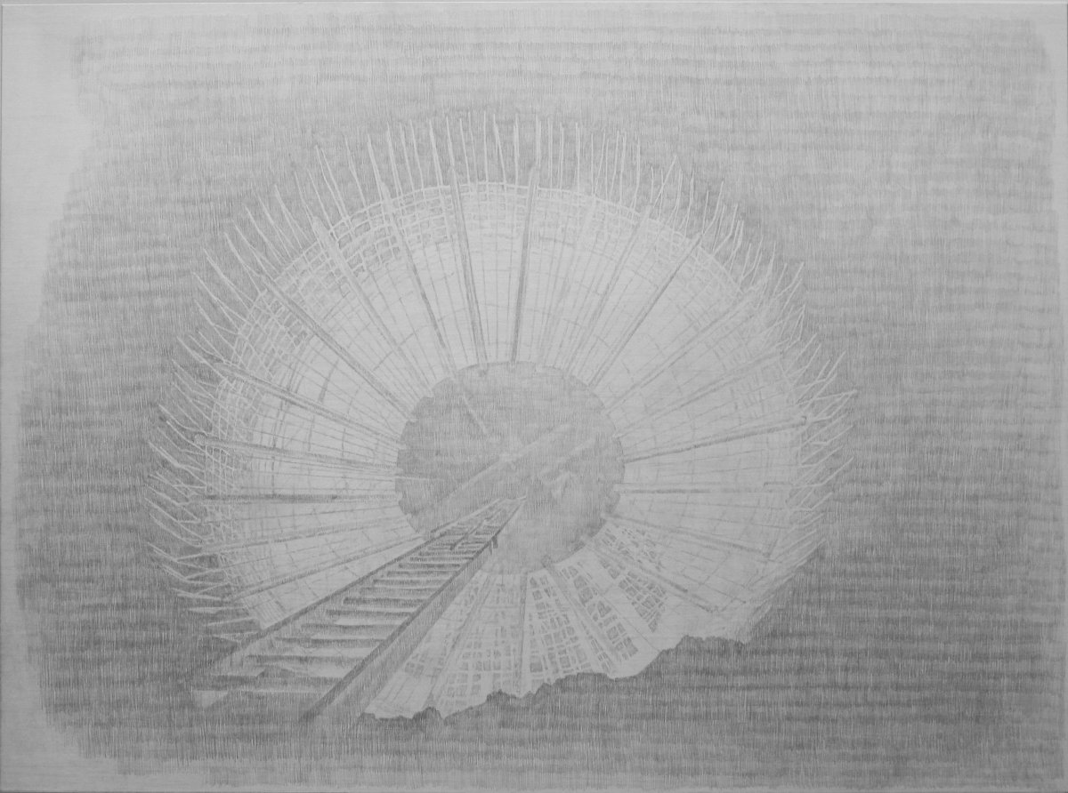 La plaque de zinc est, à l’origine, un support intermédiaire du travail, comme la plaque du graveur. Elle n’est pas un support « habituel » de dessin de par son aspect réfléchissant. La mine de plomb, quant à elle, est la substance du dessin, elle est également une matière qui réfléchit la lumière. L’union de ces deux matières crée un trouble visuel. Notre propre reflet ou celui de notre environnement entreront en contact avec l’image dessinée. Ces plaques de dessin font ainsi référence à la première plaque de photographie (daguerréotype). Découvrant au fur et à mesure que ces dessins sont plus lisibles avec une lumière faible, Zhu Hong intitule la série Pour la nuit.