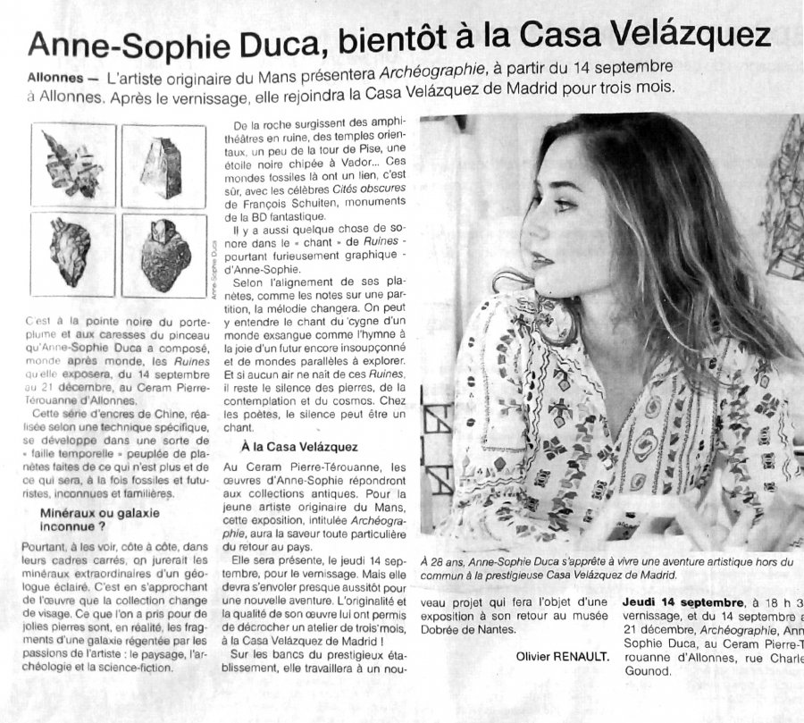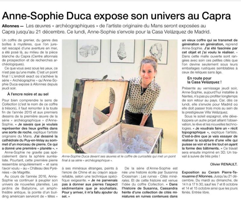 ← Anne-Sophie Duca 1/5 Anne-Sophie Duca, «Presse», photographie : droits réservés Anne-Sophie Duca, «Presse», photographie : droits réservés Anne-Sophie Duca, «Presse», photographie : droits réservés Anne-Sophie Duca, «Presse», photographie : droits réservés Anne-Sophie Duca, «Presse», photographie : droits réservés Presse
