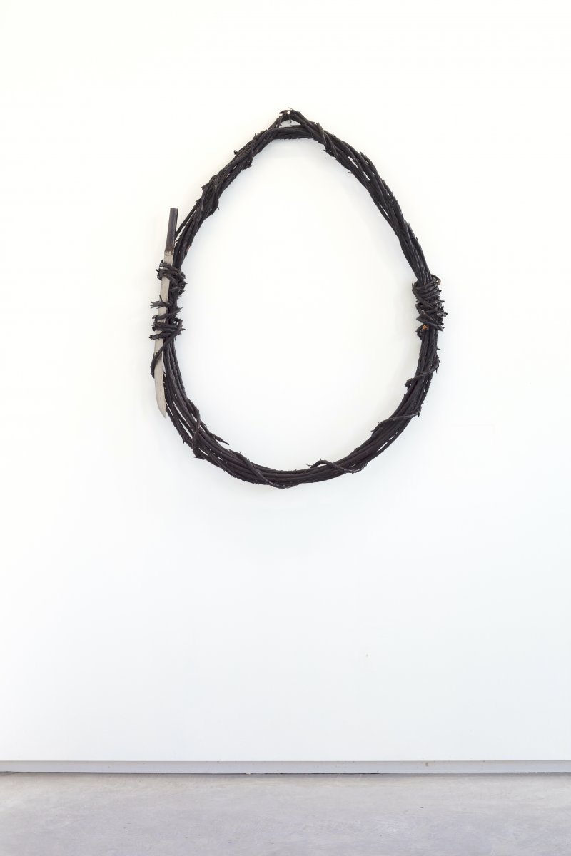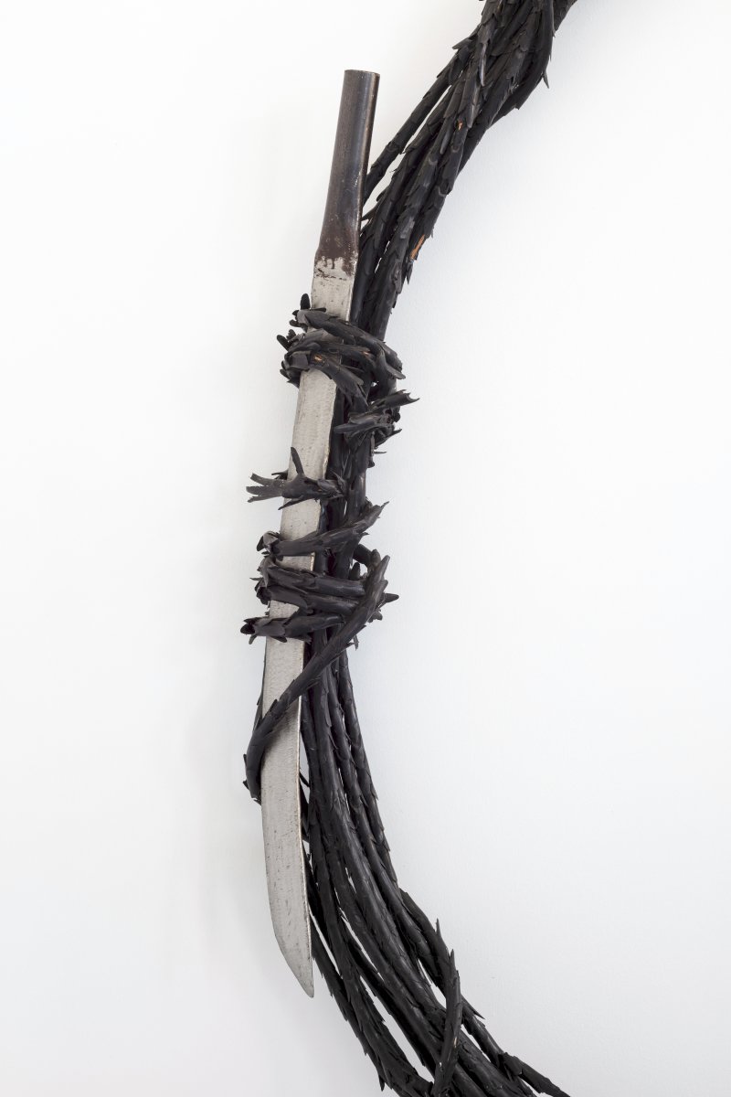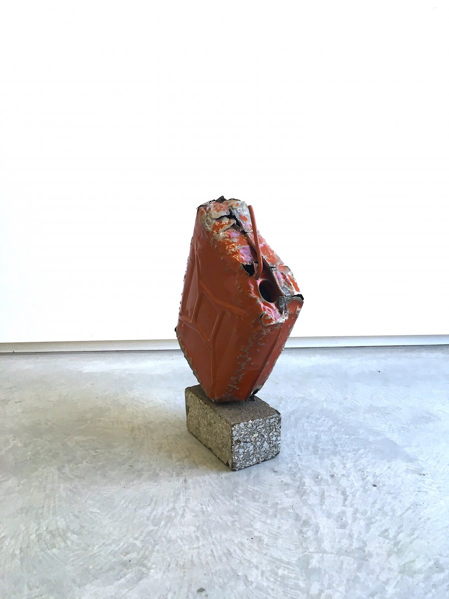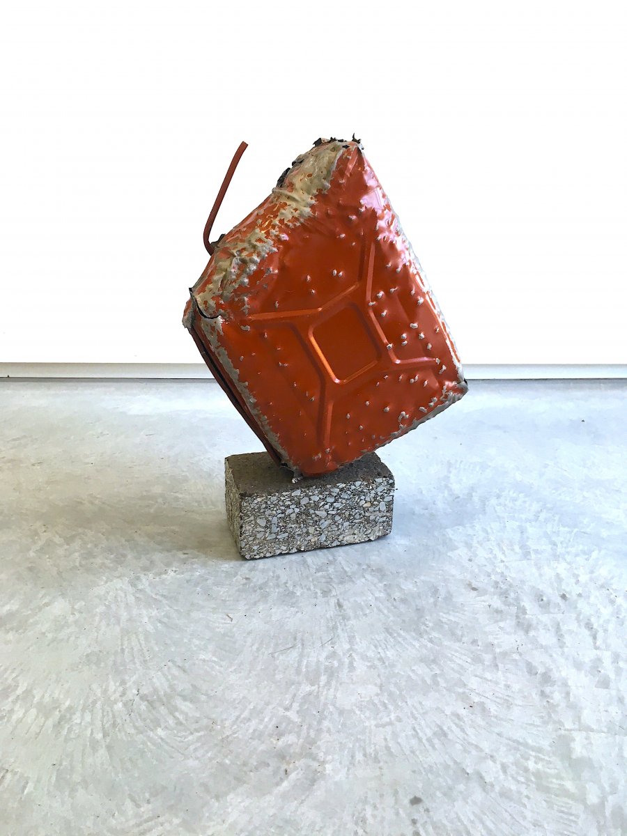 Dans le cadre du projet Under the Sand, le travail d’ébrèchement de Benoît Travers prend un tournant politique. Lors du de création à Gafsa, dans l’oued el Melah en Tunisie, il choisit ses objets parmi les éléments au rebut, récurrents dans le paysage urbain. La révolution tunisienne s’incarne ainsi dans quelques objets tragiquement symboliques. Les jerricans ébréchés portent en eux le souvenir de l’immolation par le feu de Mohamed Bouazizi qui en 2010 marque le départ de la révolution, tandis qu’un câble électrique tailladé, enroulé comme une couronne d’épines, s’érige à la mémoire des jeunes tunisiens morts par électrocution en escaladant des pylônes électriques entre 2010 et 2016. Les pièces issues de ce projet acquises par le fond de dotation Katapult témoignent quant à elles plutôt d’une détermination toujours renouvelée face à une forme de violence insidieuse à l’œuvre dans un contexte de crise économique et politique.