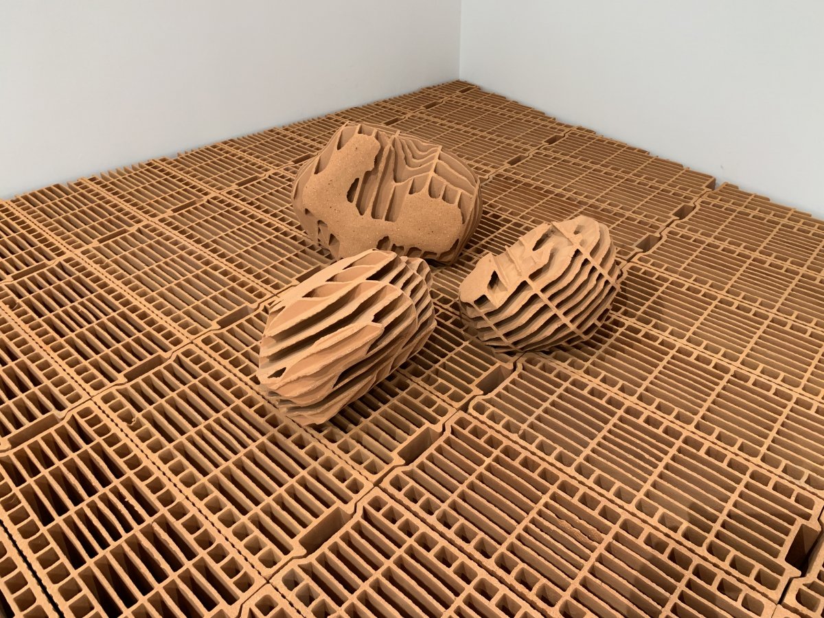 L’invitation à Landerneau s’est faite sous le signe d’une matière minérale, la terre, la municipalité ayant le grand projet d’ouvrir à la visite pour l’été 2019, une ancienne briqueterie aujourd’hui en l’état de vaste ruine à ciel ouvert. En écho, l’exposition à la galerie de Rohan, présentera un état de la réflexion et des expérimentations des deux artistes entre art, technique et science.