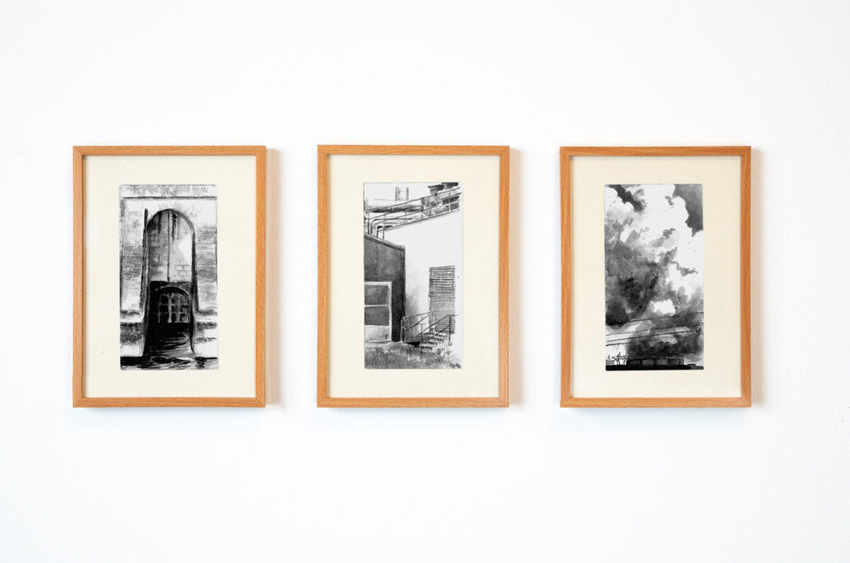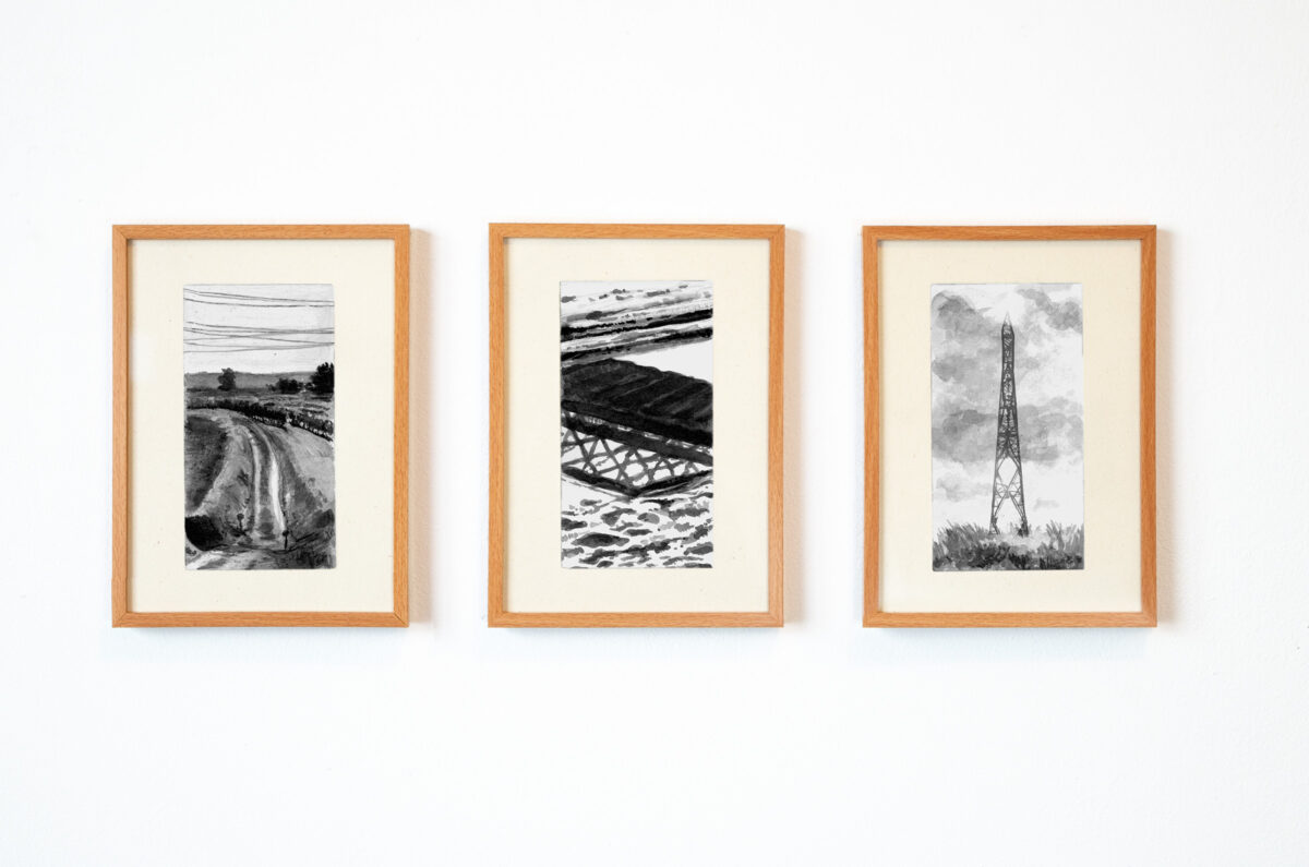 12 dessins au lavis d’encre de chine sur papier Hahnemühle 325g, 70 x 130 mm