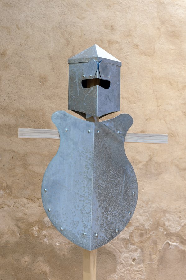 Vincent Mauger opère ainsi par glissements et rapprochements : en filigrane, il nous suggère que les représentations du pouvoir n’évoluent guère, de même que la gestion des conflits. En creux, il nous interroge aussi sur notre monde contemporain. Aussi folklorique que fonctionnel, le costume des CRS, proche de l’armure médiévale, ne joue-t-il pas avec le même type de représentation ?