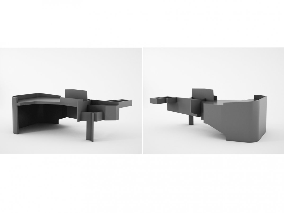P.Besson, «Console 2», 2013, modélisation-MDF noir,140 x 101 x 49 cm.