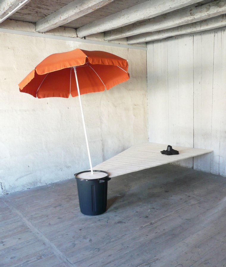 N’ayant pas d’atelier depuis presque un an la résidence fut l’occasion de produire un travail de sculpture et d’installation: Madame de Fontenay est donc née dans le grenier de la maison alors que Coup de vent diffusait un très discret son de tempête par son combiné téléphonique. Triplette venant égailler par ses couleurs la joyeuse tribu qui a vu le jour lors de ces deux mois.