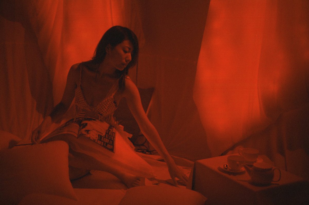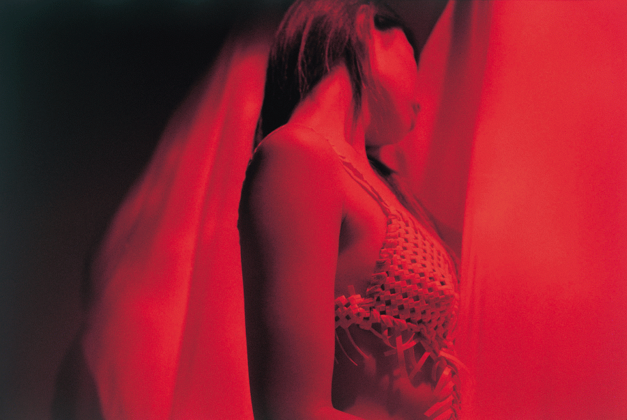For Yokohama Laurent Moriceau has collaborated with the young Japanese designers group 20471120. Moriceau represents a younger generation of French artists who are working between different fields. Much of his past works have included aspects of public participation, or social involvements, but for this exhibition he has developed another work which uses fashion and very specific lighting. A Red Light Bathing Space is a project in which fashion designers are asked to develop clothes using light sensitive papers and materials.