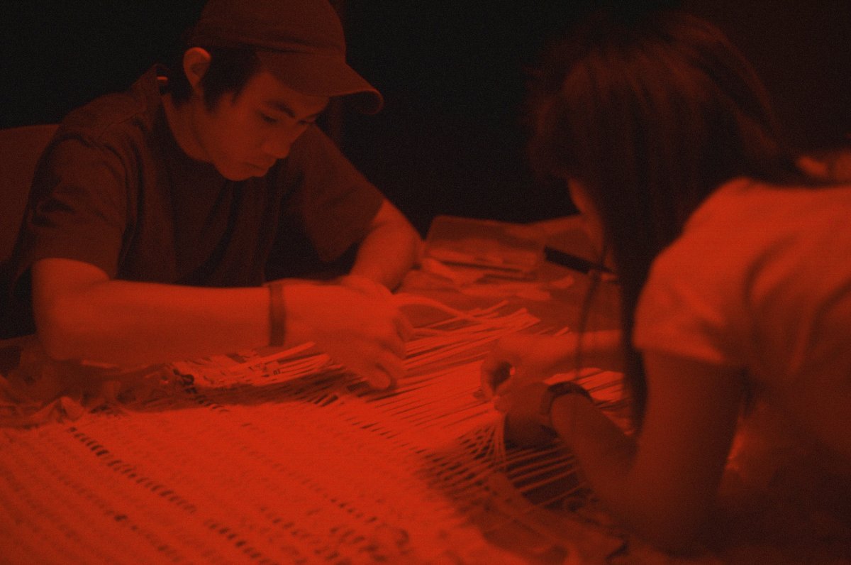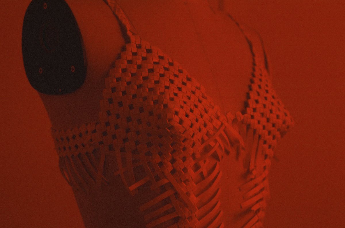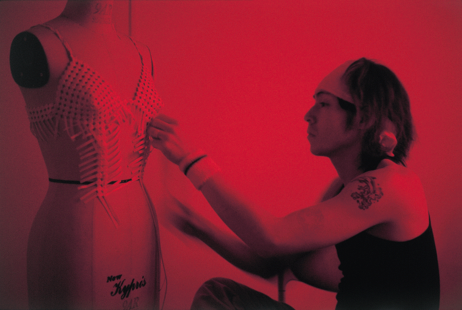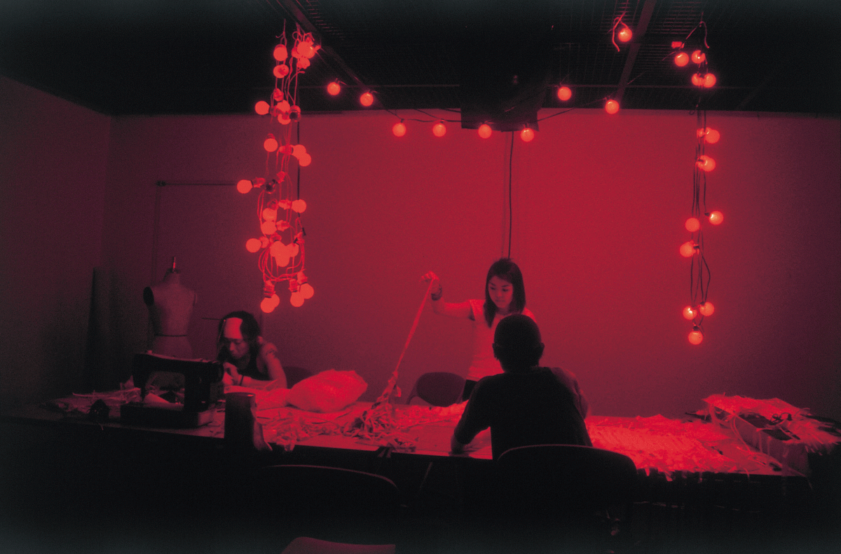L’exposition à la Triennale de Yokohama comportait deux espaces différents : l’atelier de fabrication des Perméables et les bains de lumière rouge. La rencontre avec le styliste Nakagawa Sôchi a permis la réalisation d’un Perméable intitulé Pièce Y .