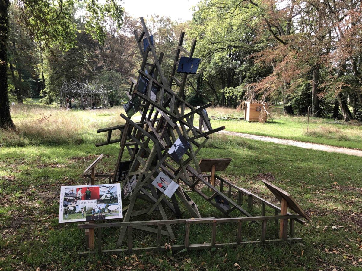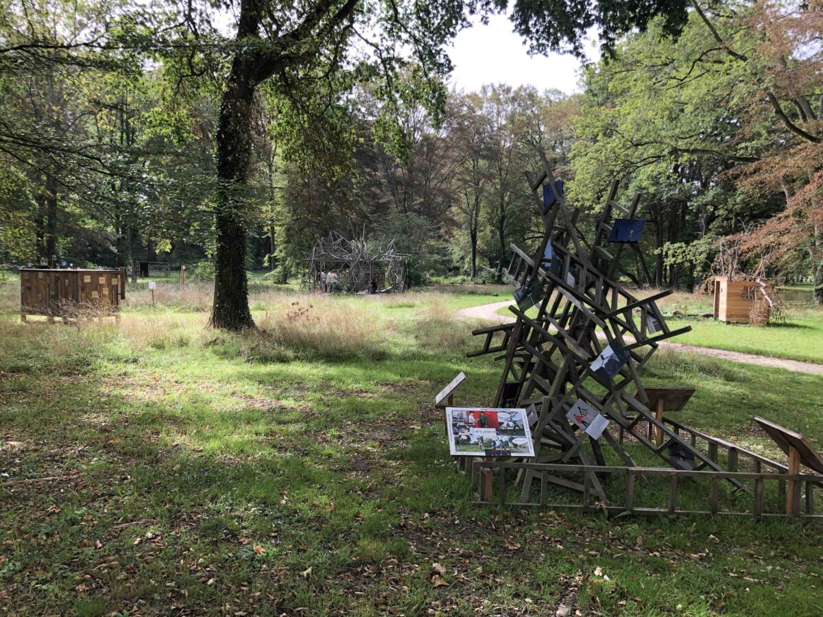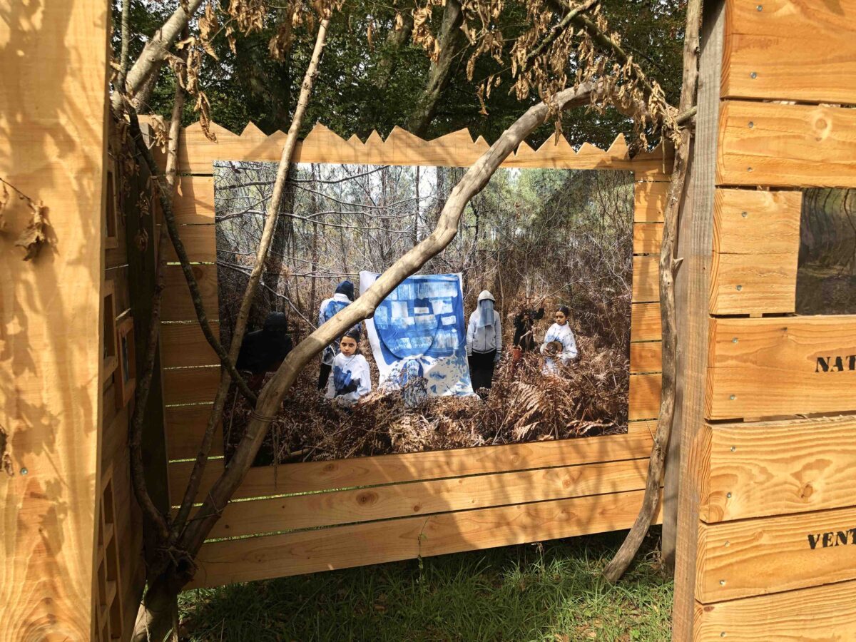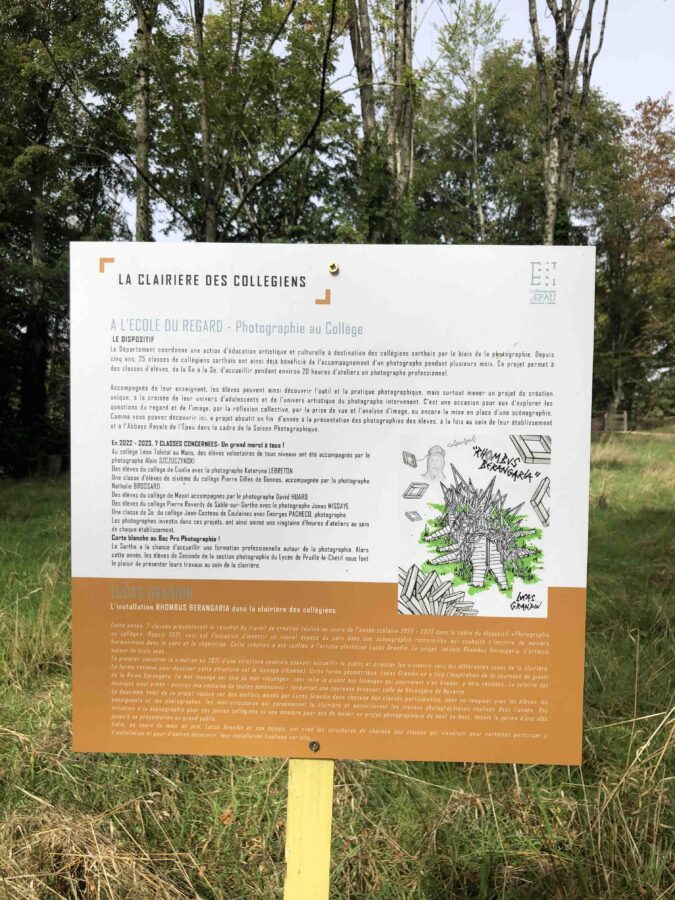 Clairière des Collégiens », dans le cadre de «Photographie au Collège» Saison photographique de l’Abbaye Royale de l’Epau 2023. Les structures doivent prolonger dans l’espace, les thématiques de travail