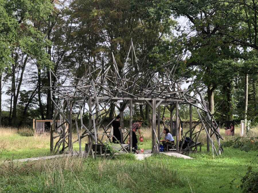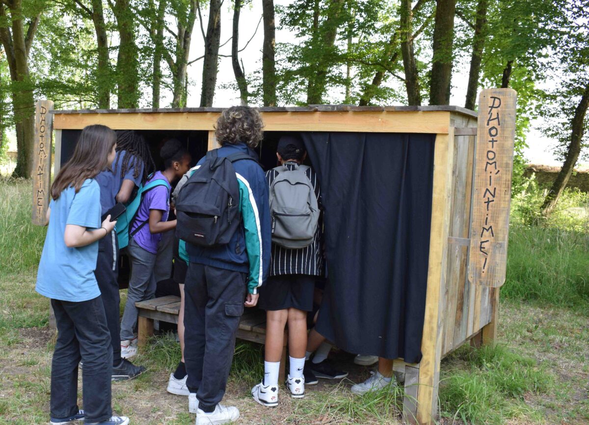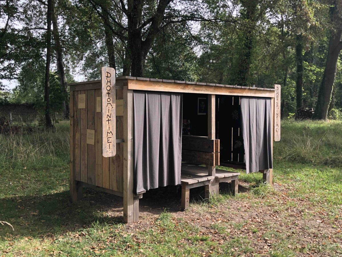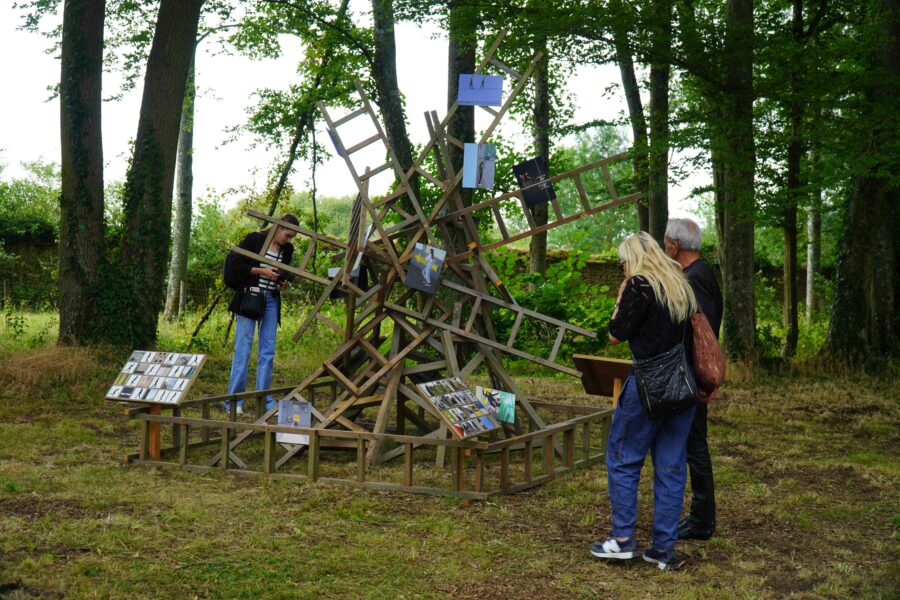 Clairière des Collégiens », dans le cadre de «Photographie au Collège» Saison photographique de l’Abbaye Royale de l’Epau 2023. Les structures doivent prolonger dans l’espace, les thématiques de travail