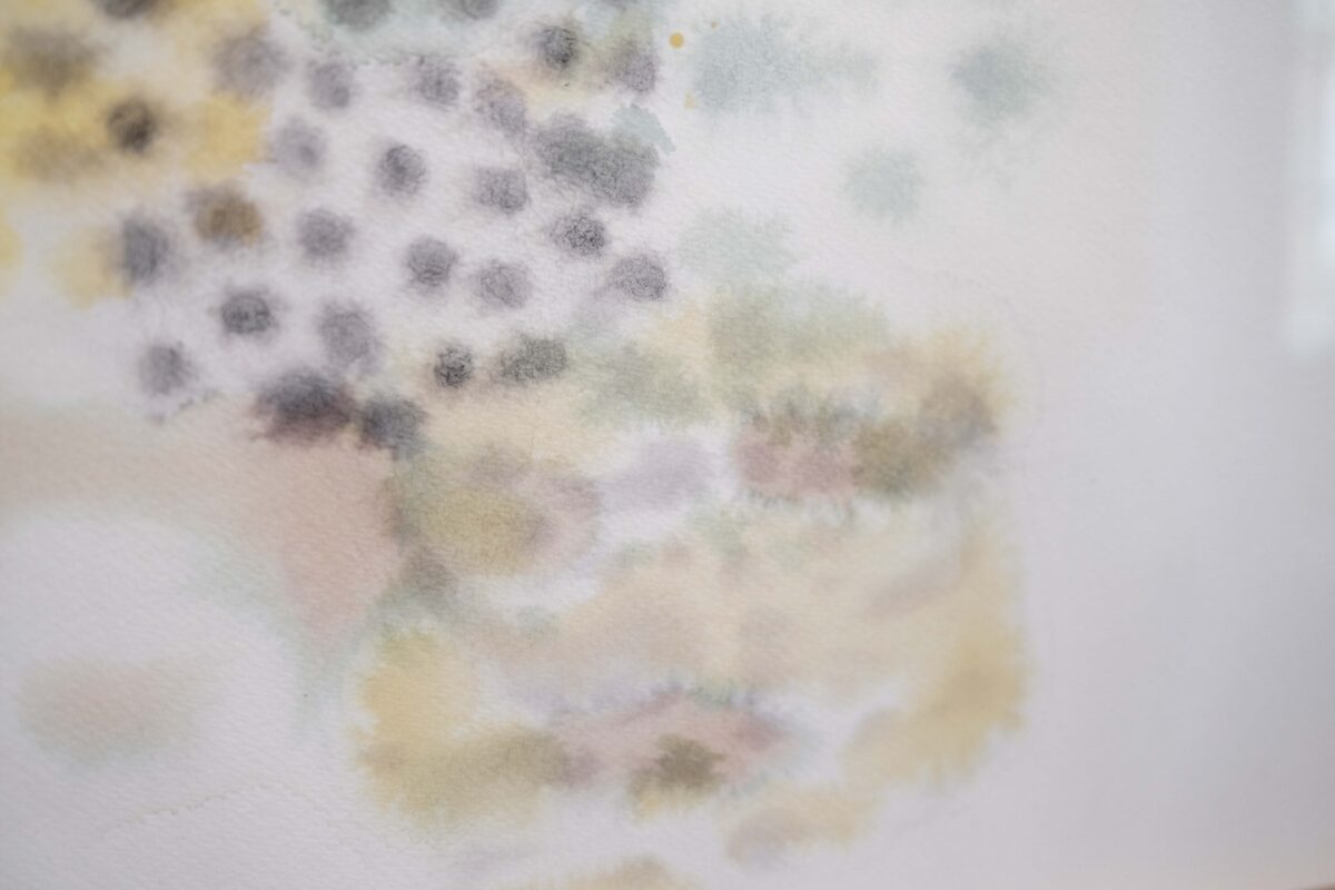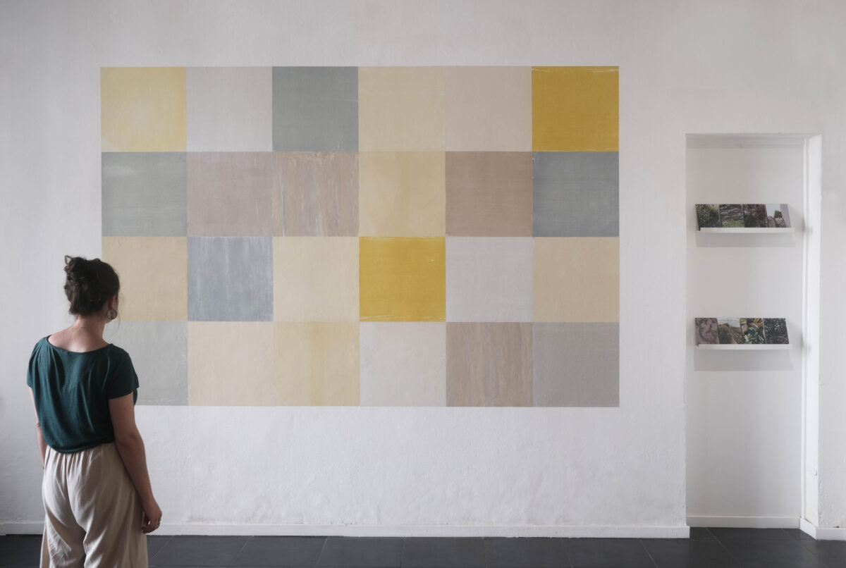 Au travers de son protocole de travail, elle expérimente un retour au geste artisanal des origines de la peinture et de la teinture. Cette recherche aux sources de la couleur se joue avec le végétal environnant.