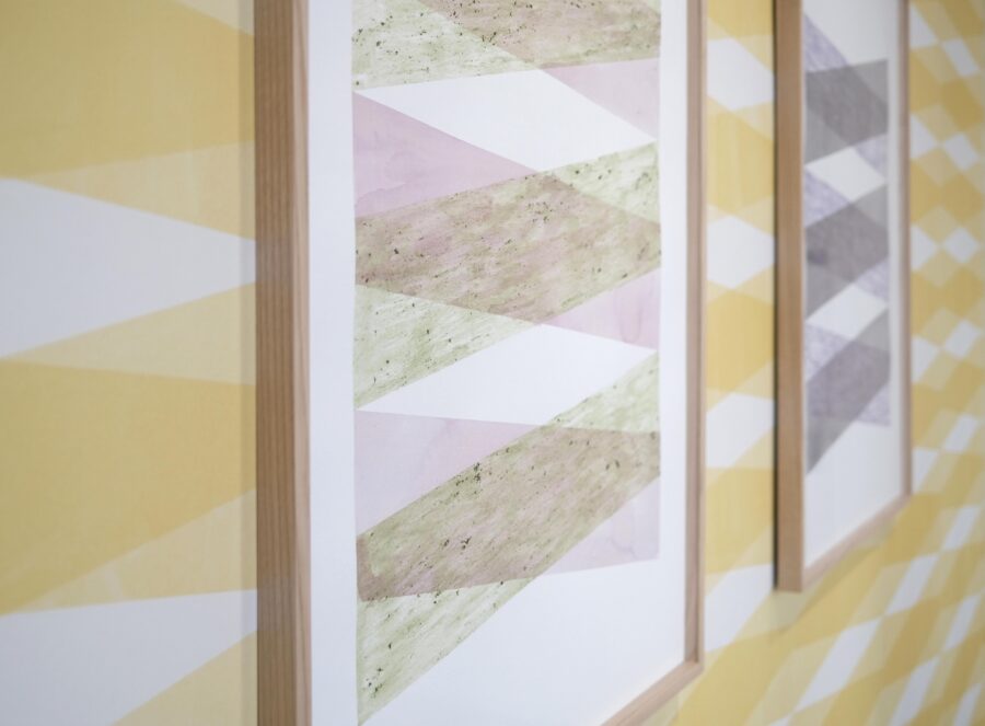 Le processus de création mis en œuvre se joue entre extérieur et intérieur, entre le temps de la cueillette et celui de la réalisation des couleurs et de l’impression en sérigraphie. Ici, les végétaux sont autant les matériaux utilisés que l’objet de la représentation.