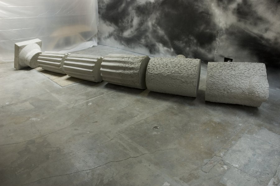 Inspiré par des balades dans des Folies et le livre Ruines et Paysages, salon de 1767 de Diderot, Ruiné rassemble deux styles de décors architecturaux, en vogue entre le 18ème et le 19ème siècles: le Néo-Classique et la Rocaille. Cette sculpture pose la question des symboles, idées et références que l’on respecte à une période donnée, que l’on juge réactionnaires ensuite, avant de ressurgir un jour.