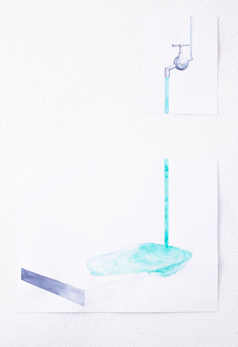 Aquarelle et pigment métallique sur papier Dimensions variables Nantes Vue d'atelier.