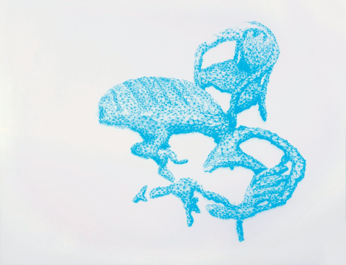 Ces chaises et tables ont été scannées en 3D avec un capteur de jeu vidéo de Xbox qui n’est pas prévu pour à l’origine et qui permet avec un programme tiers de le détourner, (une autre façon de faire un croquis et de prendre une distance).