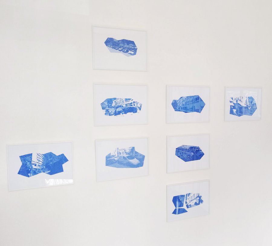 la Série Google scan est produite à partir de capture d’écran dans google earth et réaliser par une machine-robot polargraphe. 40x 30 cm sur papier bristol, feutre bleu.