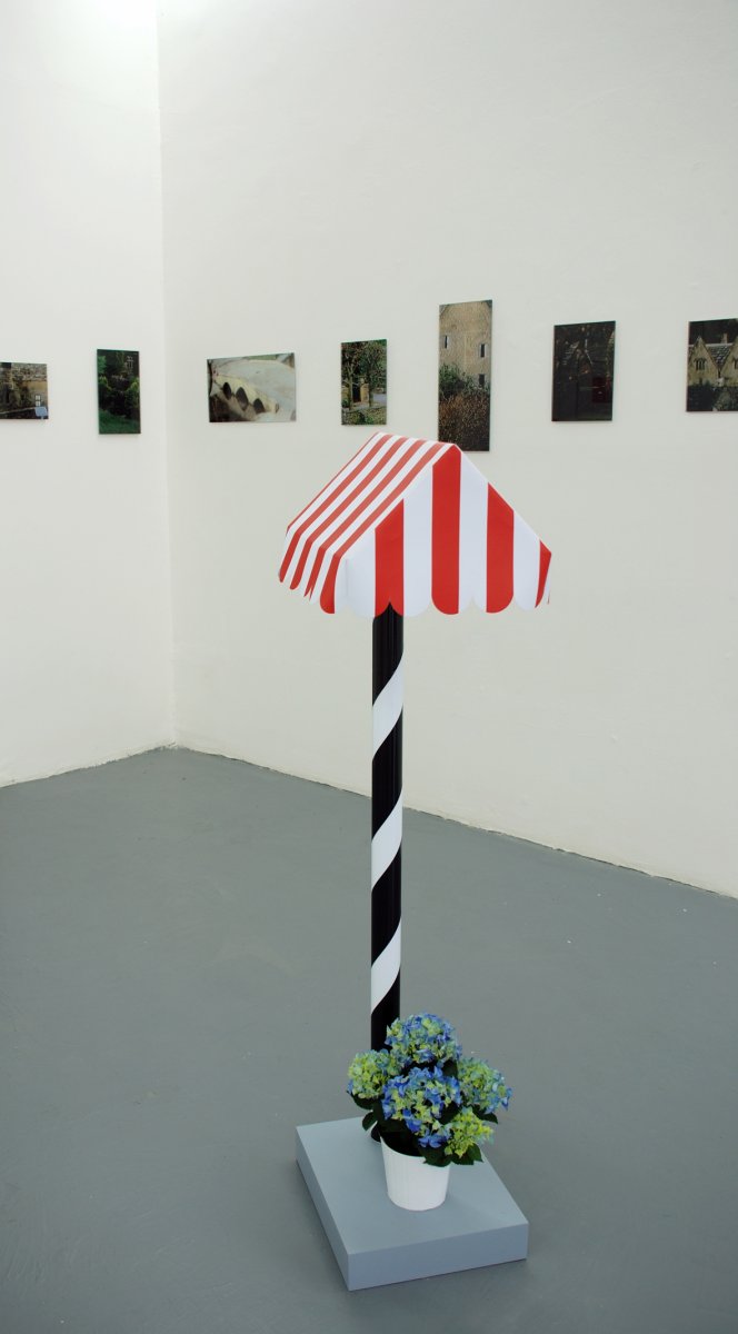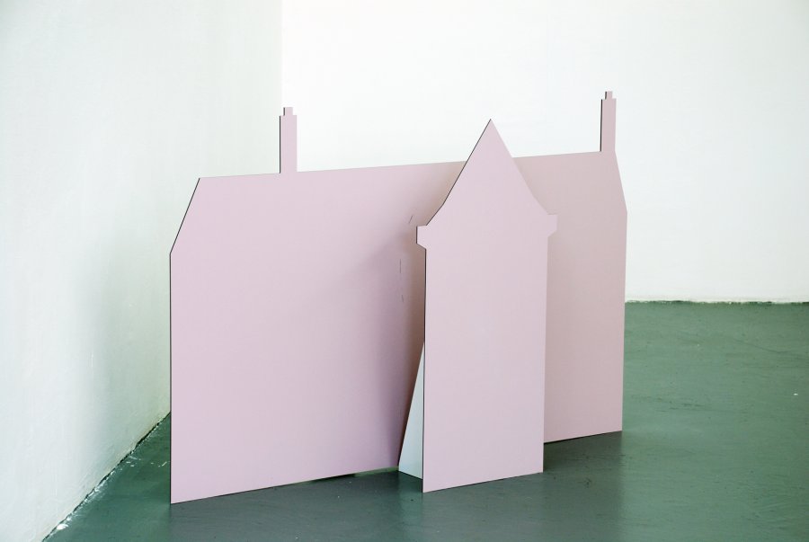Les oeuvres de Sophie Hurié se construisent à partir d’un élément fragmentaire réel -comme une photographie ou un badge de son enfance- et produisent une auto-fiction. Cette expression de la mémoire intime de l’artiste matérialise la subjectivité collective du public.L’oeuvre et son objet se situent dans un décalage assumé aux frontières troubles. L’artifice déplace la réalité et le fictif dans une expérimentation de la matière et de la perception sans cesse renouvelée. Des jeux d’échelles, de matières et de fonctions perturbent notre lecture : pour exempleThe Pink house reprend les formes d’une maison habitée par l’artiste mais à l’échelle de maquette. Réalisée selon le point de vue d’une photographie, la construction ne comporte qu’une face volumétrique de l’habitation tel un décor. L’ornement tient une place centrale au sein de l’exposition STOP LOOK & DREAM, il n’est plus un élément décoratif réhaussant une surface mais la surface même d’exploration. Ainsi la série photographique The Village dévoile des fragments architecturaux et végétaux. Le détail acquiert la valeur de paysage, il devient narration, comme une concrétisation de la définition de paysage selon Gilles Clément : «À la question : « qu’est-ce que le paysage ? », nous pouvons répondre : ce que nous gardons en mémoire après avoir cessé de regarder ; ce que nous gardons en mémoire après avoir cessé d’exercer nos sens au sein d’un espace investi par le corps. Il n’y a pas d’échelle au paysage […]». Le végétal ponctue subtilement l’ensemble de cette exposition, esthétique d’un jardin rêvé, objet déplaçant les normes : un rideau couvert de motifs floraux occupe la galerie comme un voile sur nos réalités et codes.