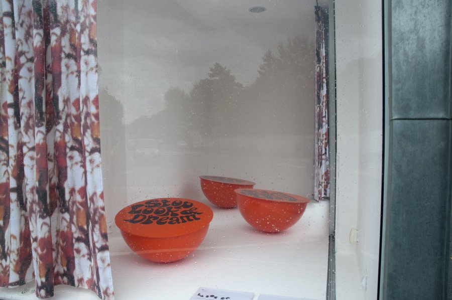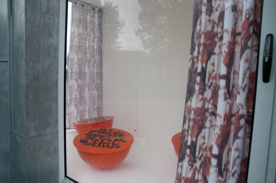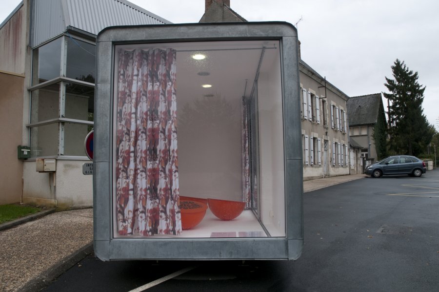 Le passant, confronté à cet espace, à la fois clos et ouvert, devient voyeur. Les rideaux suggèrent l’idée de séparation, de frontière, nous mettent à distance et paradoxalement nous incitent à nous rapprocher, à regarder « à travers » les vitres. La végétation elle-même change de statut. La vision des motifs depuis l’extérieur interpelle, mais en fait, inverse notre position habituelle. Les limites entre espace intime et espace public troublent nos repères.