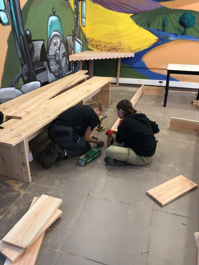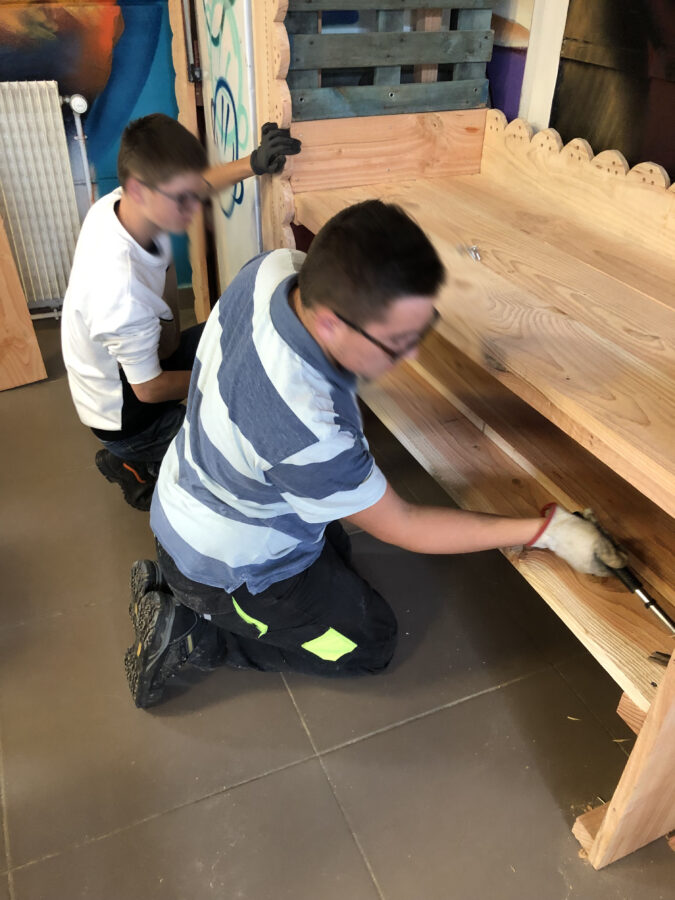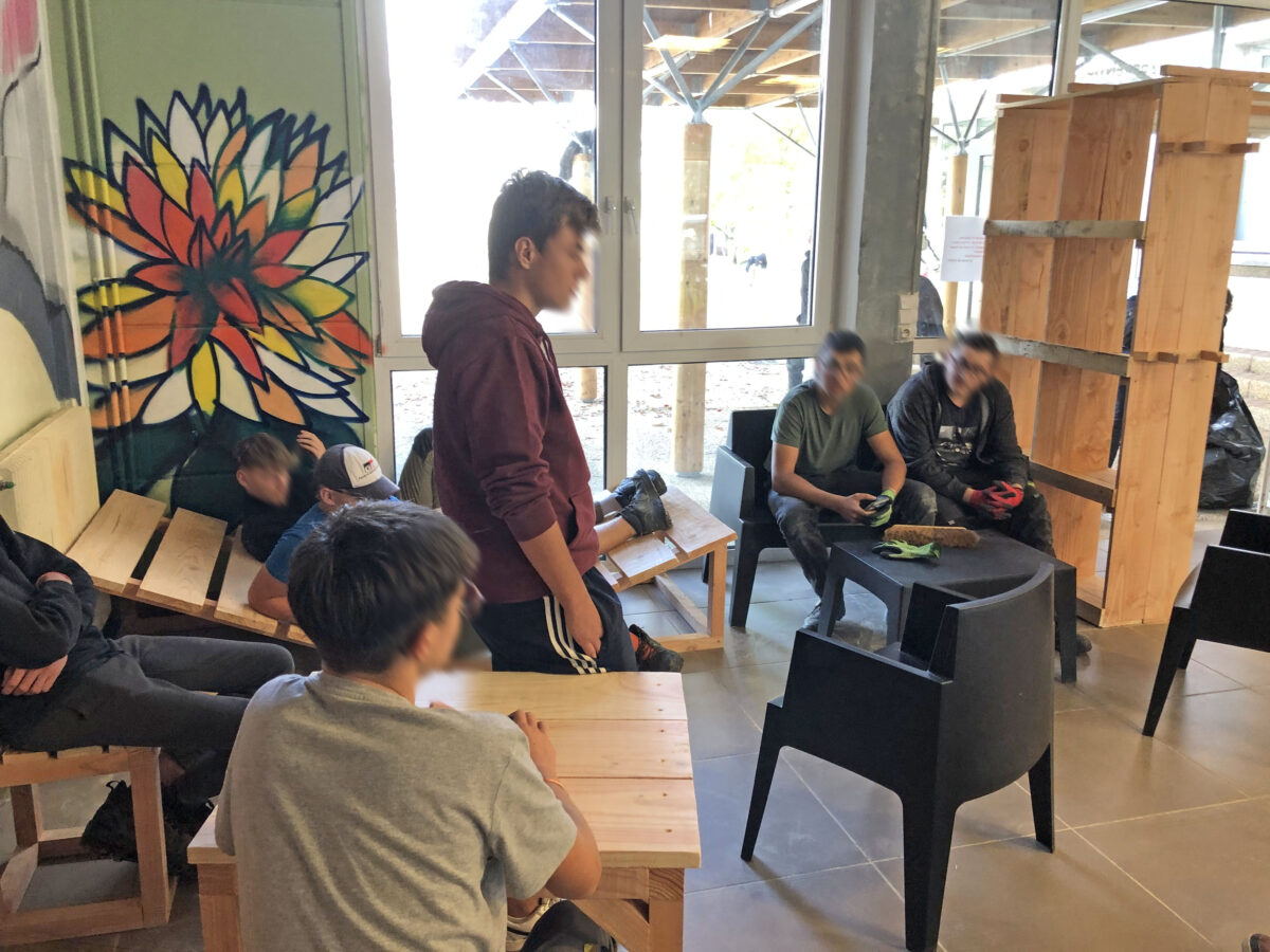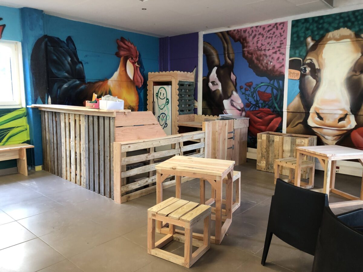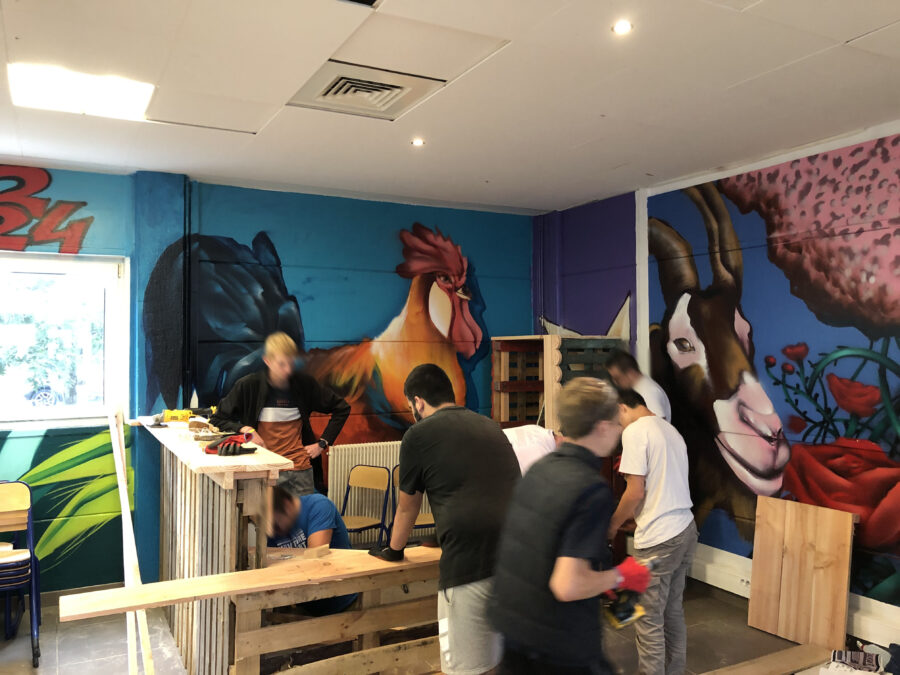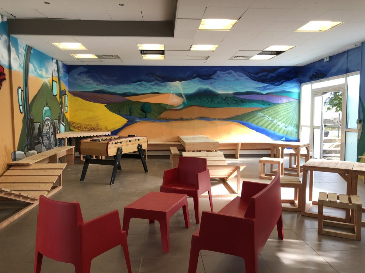 Un nouveau foyer à l’image des élèves, tout en leur proposant et de le penser et de le construire. En plus de leur avoir apporté des notions d’esthétisme, de design, d’architecture et de conception, ce dispositif a permis ici de créer un lieu pensé par eux, construit par et pour eux, ce qui leur amènera une nouvelle façon de vivre ce lieu. Design graf# Monsieur Plume, Design Mobilier# Lucas Grandin. Un Grand Bravo à la classe de 1ere CGEA 2023/24 encadrée par Delphine Lefeuvre. Un projet financé par « Aux arts » Lycéens Apprentis.