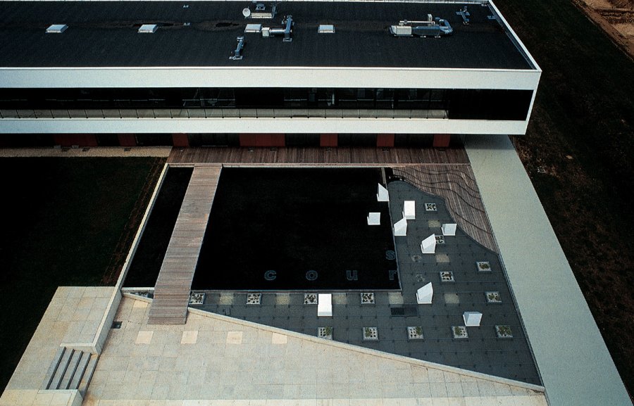 Comme dans un tapis, la composition dégage une partie centrale occupée par un miroir d’eau qui capte tous les mouvements environnants