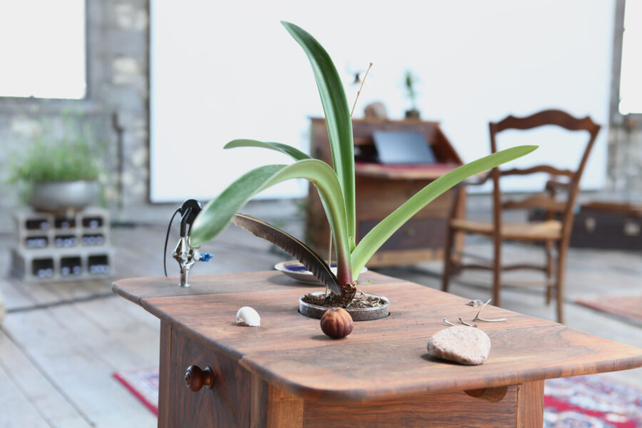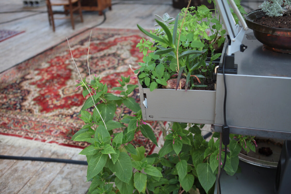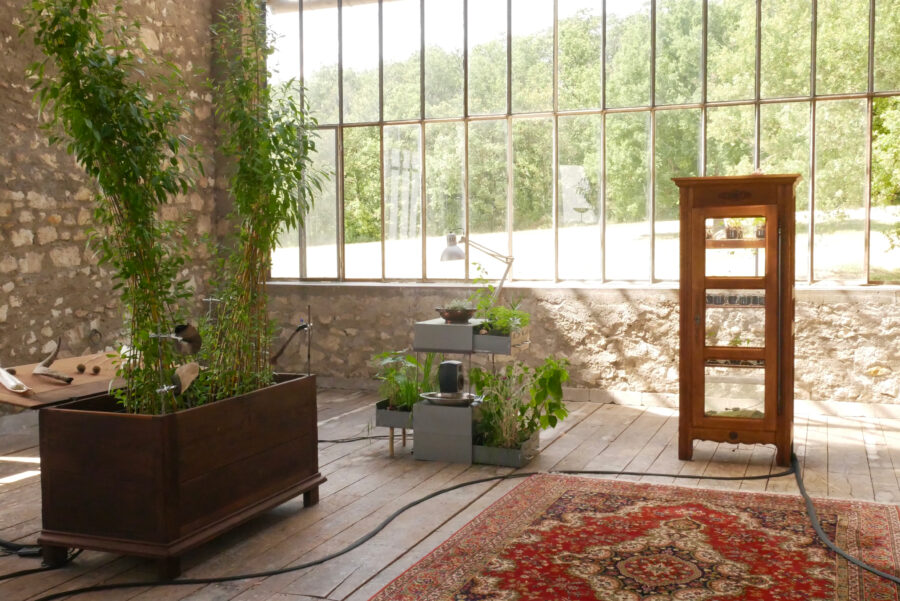 Cet écosystème d’objets est une base pour dresser un point d’écoute et d’observation, en préservant le confort d’un habitat, ici dédié à l’épanouissement des plantes.