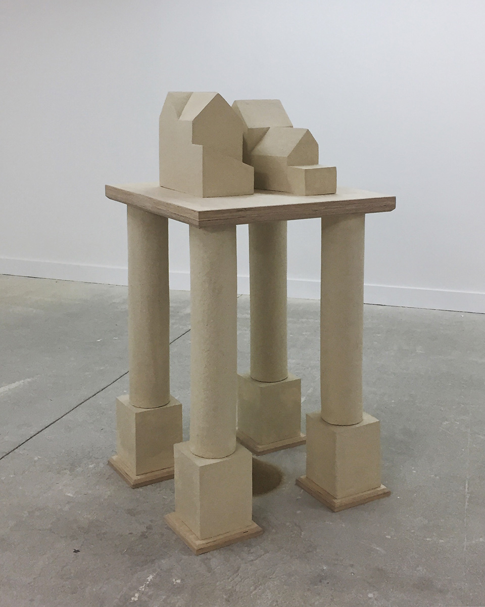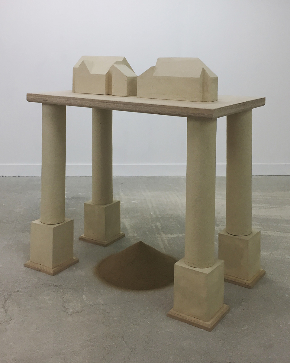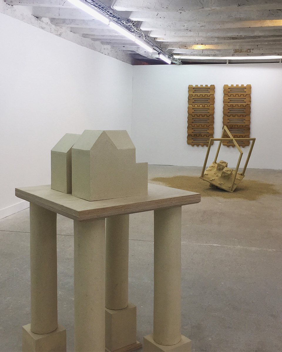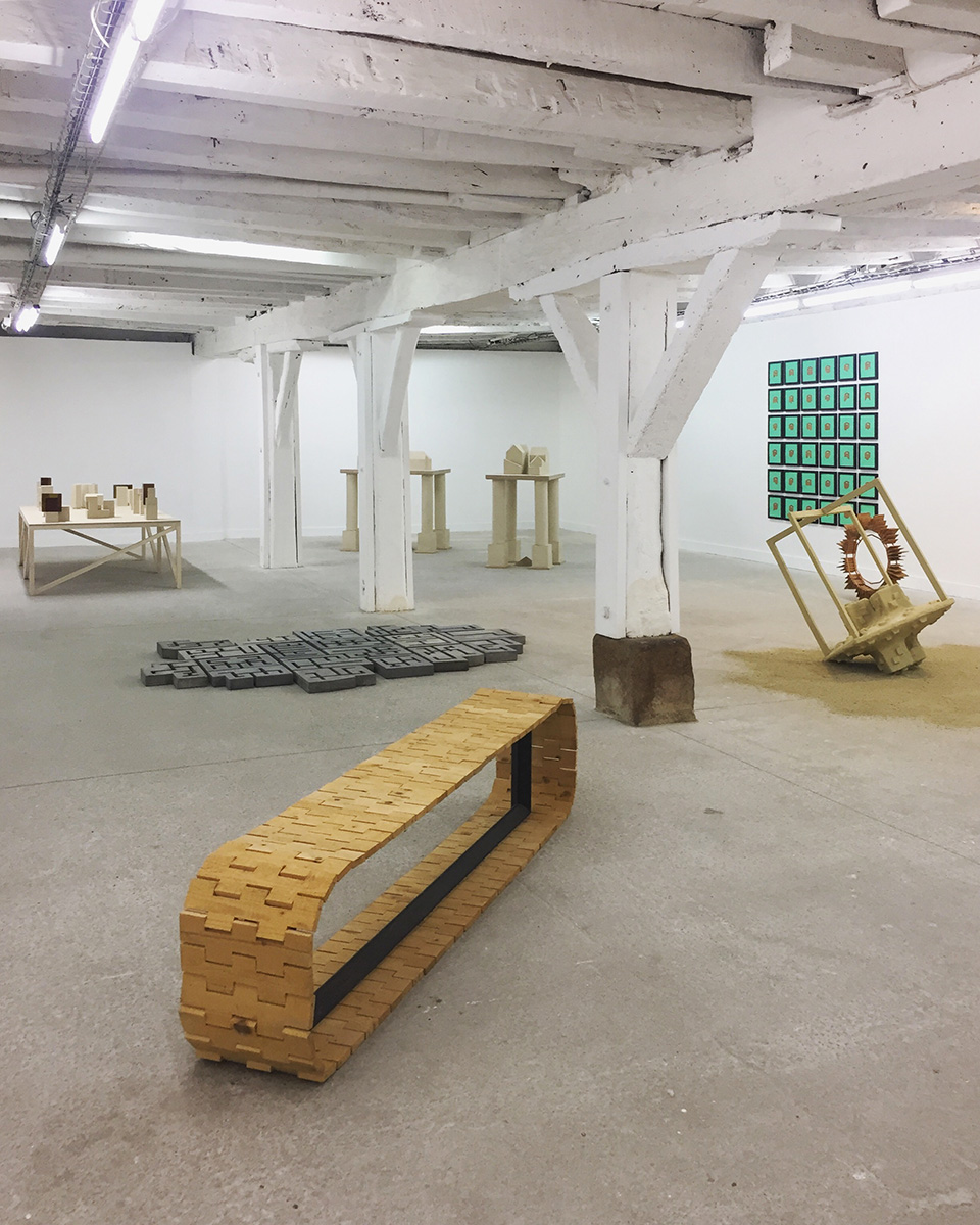Ça prend forme, ça évolue, ça glisse d’un terrain à un autre et change d’échelle tout en restant solidement érigé. “Ça”, la forme, est bien présente à travers la pratique de la sculpture, de l’installation, du dessin et de la photographie. Les matériaux, principalement bruts, renvoient à ceux du bâtiment : terre, métal, bois, béton ; façonnés, cuits, cintrés, assemblés, coulés… Les gestes que nous utilisons individuellement sont proches de ceux des artisan·e·s, des façonneur·euse·s, car par bien des aspects, la fabrication des oeuvres choisies ici a davantage trait à la construction. L’aspect esthétique est assumé sans renier le fait qu’il soit aussi vecteur de sens.