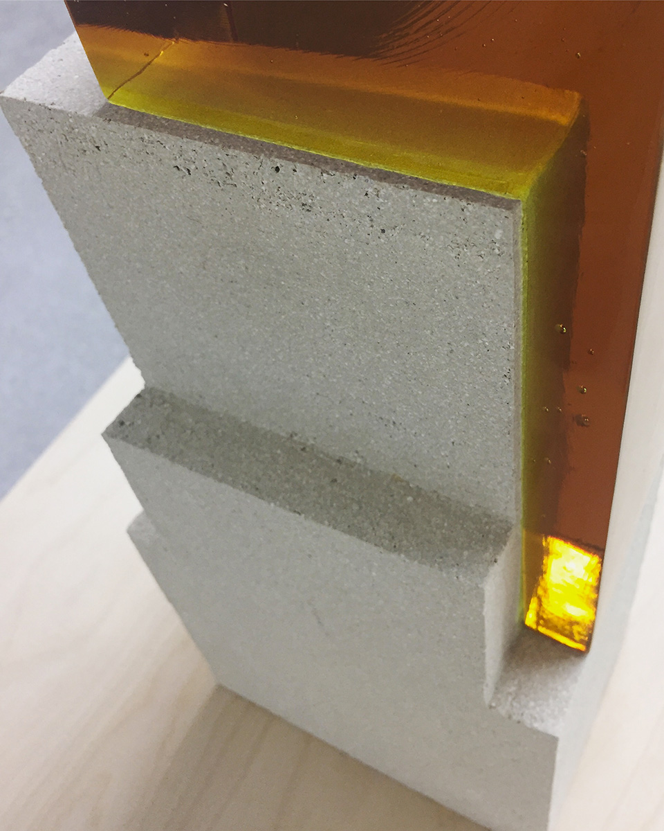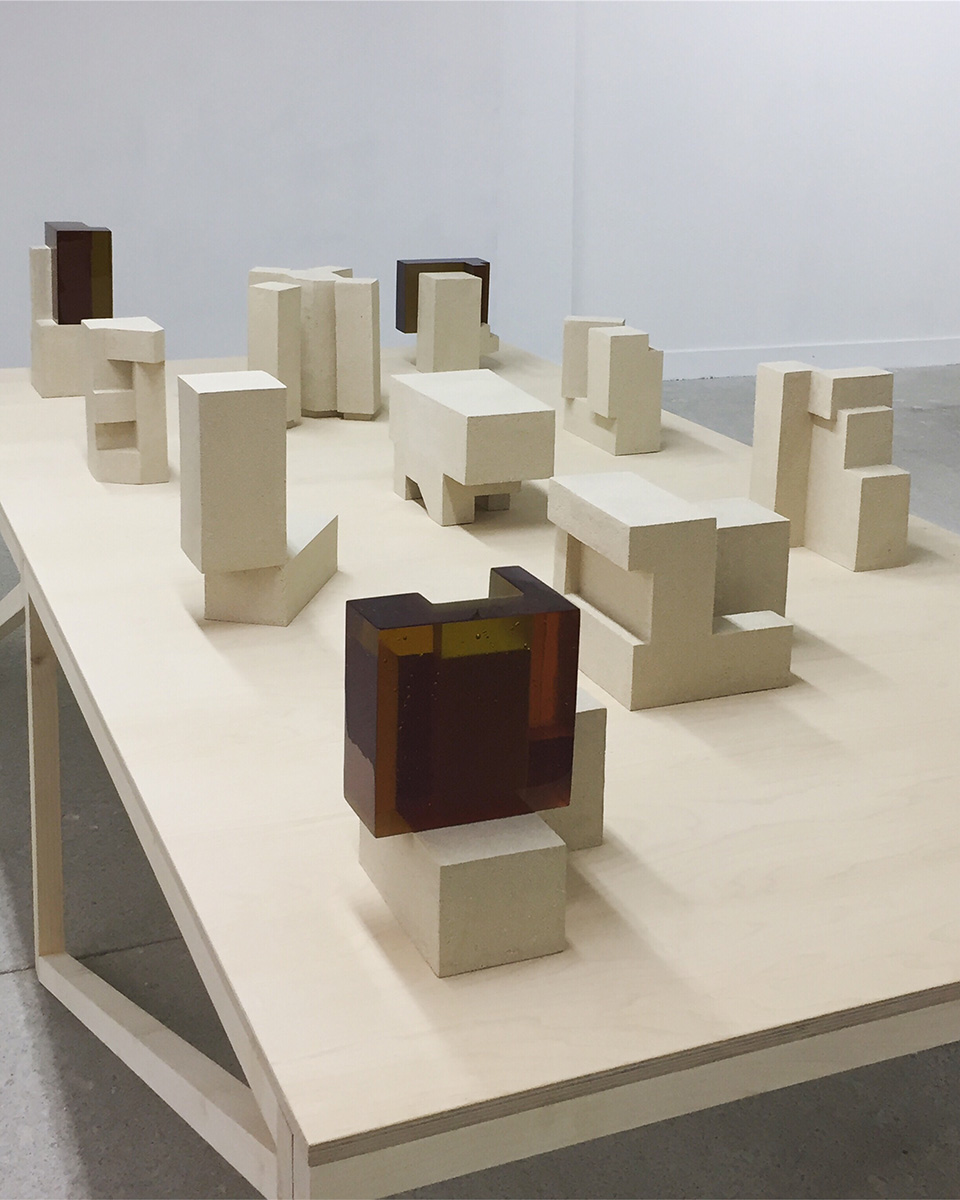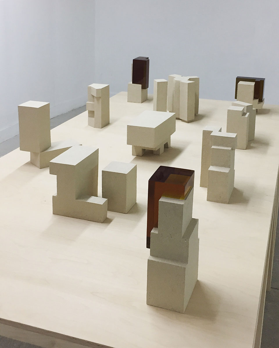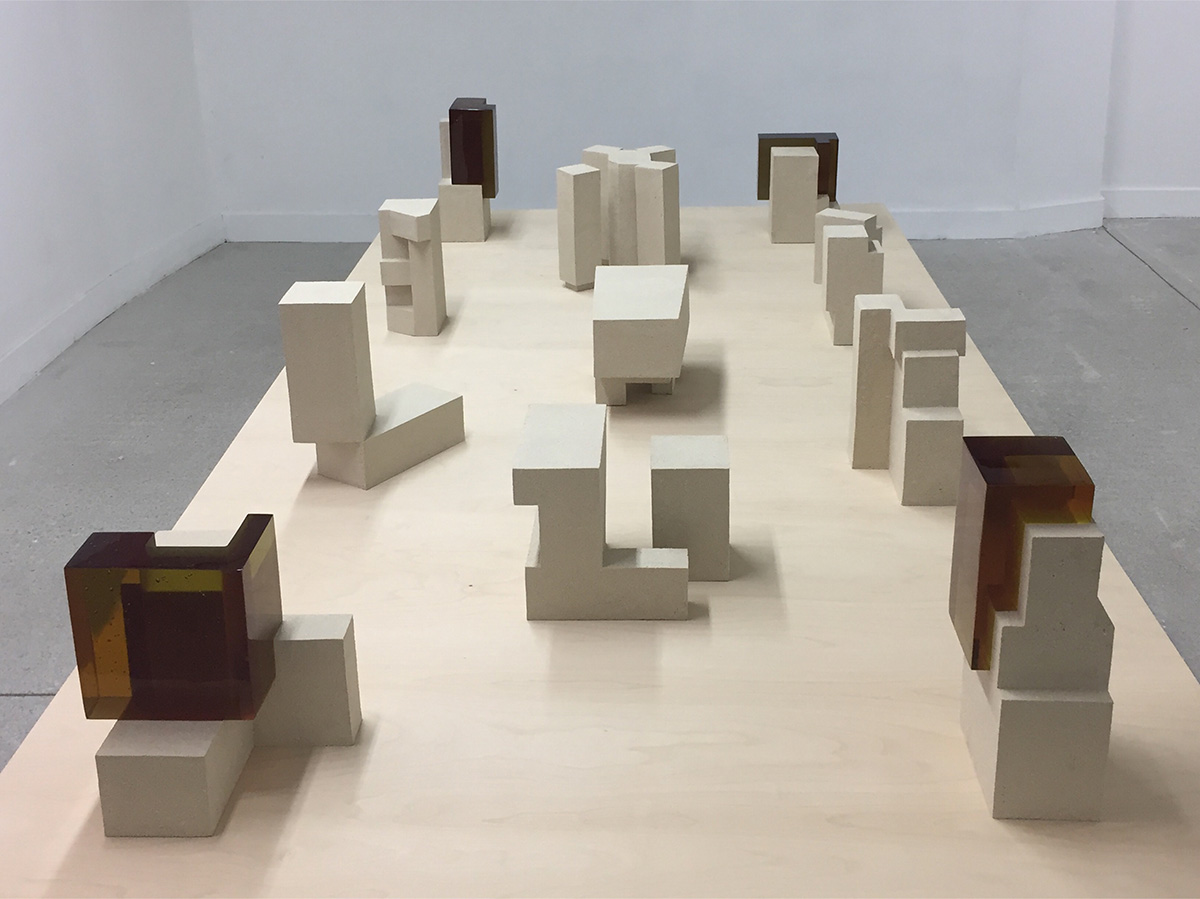 Dans mon travail, l’exploration des espaces, qu’ils soient liés à l’architecture ou à des recherches prélevées au domaine de la science, est retransmise ici à travers des sculptures porteuses de récits sous-jacents. “Les oeuvres de Lidia Lelong éclosent selon un processus analogue. Au gré de ses déplacements, l’artiste observe des formes et des couleurs dans le paysage ou l’architecture, qu’elle garde en mémoire. Elle les interprète ensuite selon les souvenirs qu’elle en conserve, inéluctablement parcellaires, altérés mais aussi colorés par les atmosphères de ces moments révolus. Les couleurs, les dimensions et les fonctions sont donc libérées des formes initiales pour devenir autres”.4