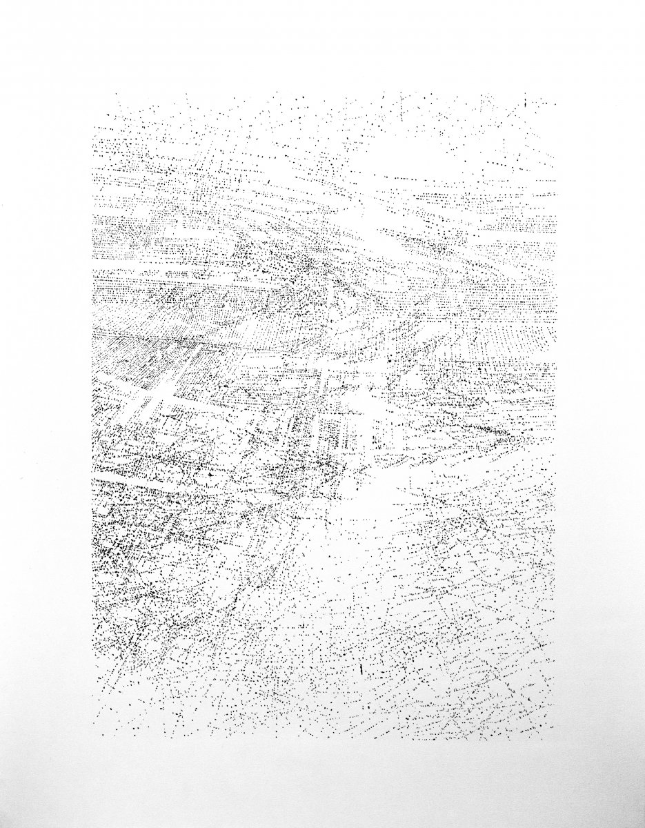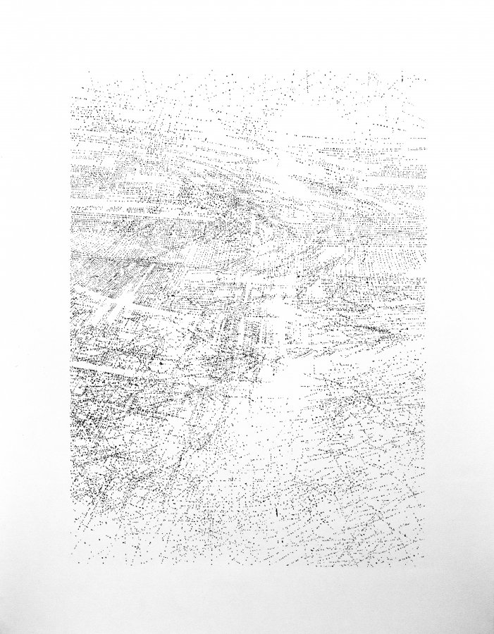 Cette œuvre a été réalisée aux Ateliers du Plessix-Madeuc. Les fenêtres de mon atelier offraient un point de vue aérien sur la plaine agricole. Je voulais retranscrire ces paysages par le dessin.