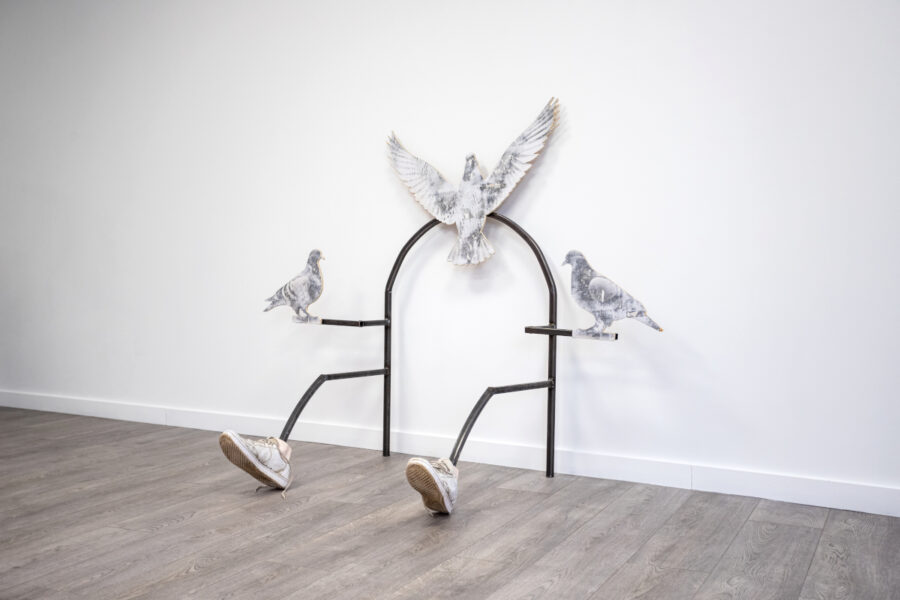 Bois, métal, plâtre teinté et chaussures 122 × 160 × 78 cm