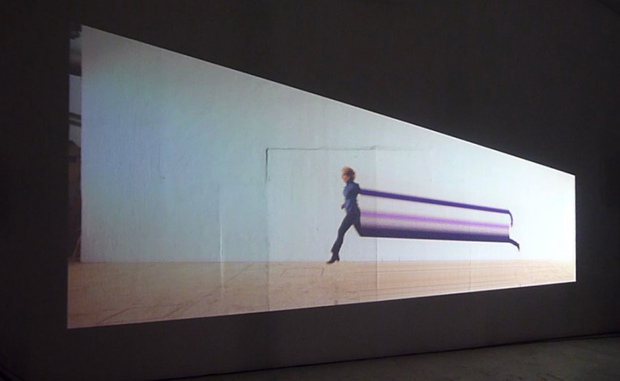 En analogie avec le déplacement de l’artiste en résidence, le film éprouve l’élasticité en même temps qu’une unification nécessaire. En échos aux outils technologiques qui permettent au corps de voyager entre réalité physique et virtuelle, l’artiste explore un espace propice à la création : l’étirement démesuré d’une ligne verticale de pixels dont chaque changement coloré génère le son du film.
