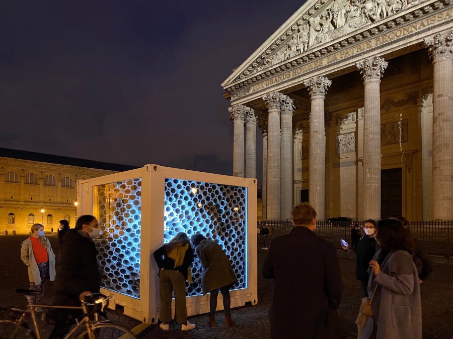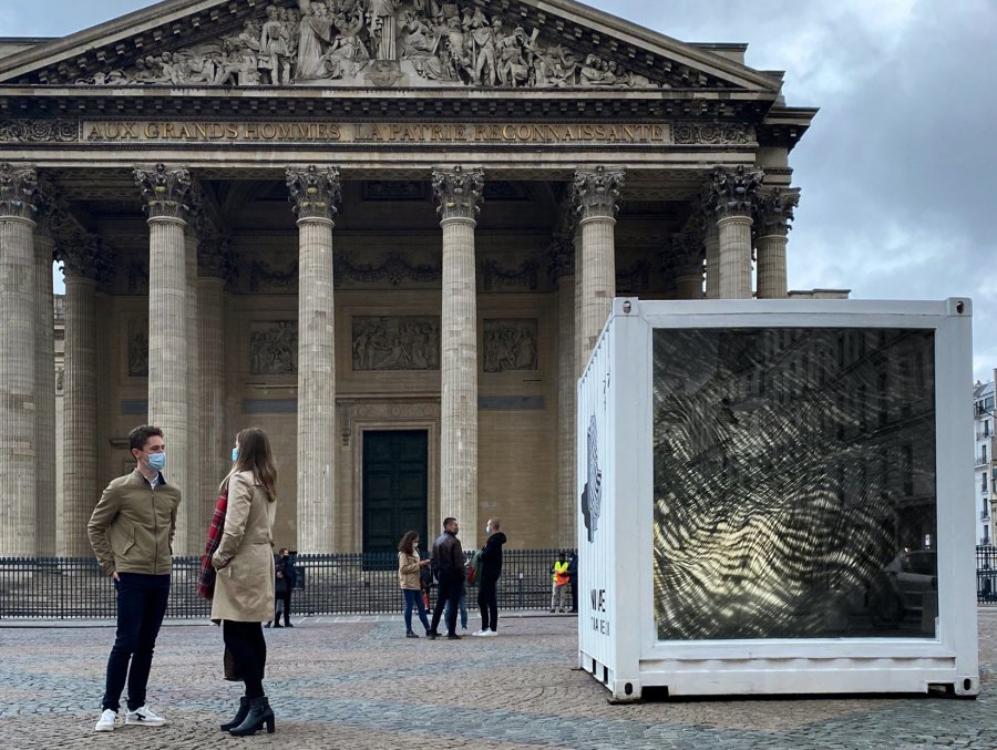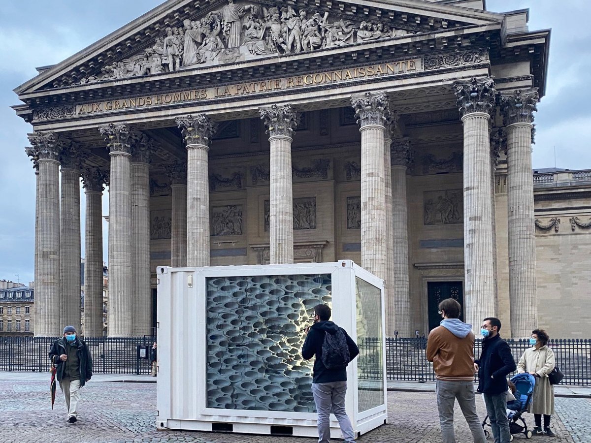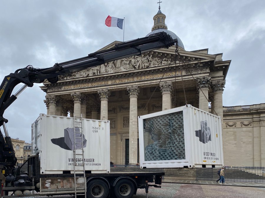 Ensemble de deux containers vitrés nomades présenté initialement dans différentes communes de Normandie.