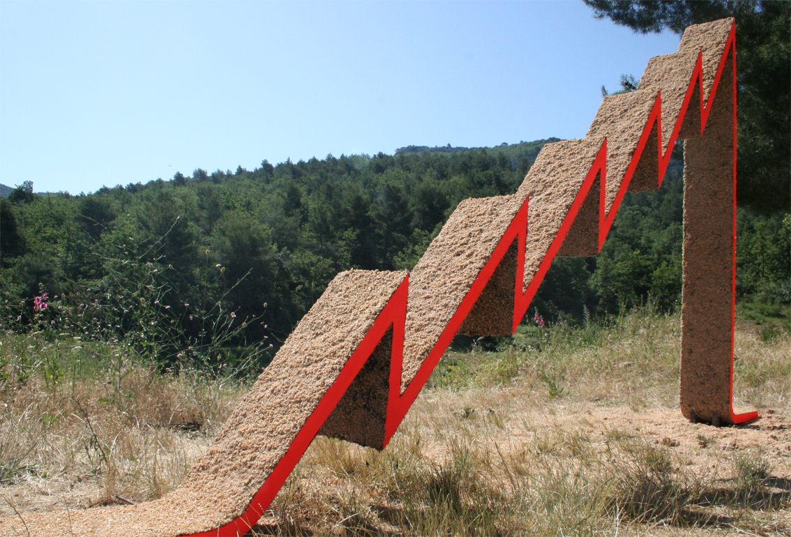 Goudron, copeau, bois, peinture 400 × 280 × 35 cm Domaine de Grand Boise Trets exposition "À l’ombre de la ligne" dans le cadre de la résidence "Voyons-voir"