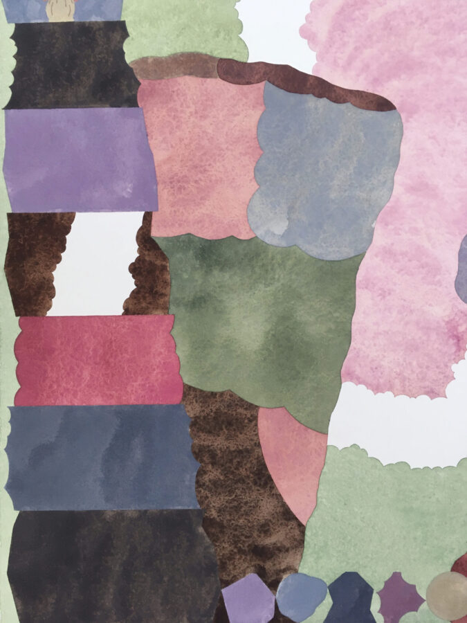Les Vermiculures constituent un ensemble de gouaches sur papier explorant les méandres de la mémoire à travers le motif de la grotte artificielle. Le terme vermiculure désigne ces tracés sinueux creusés par les larves d’insectes dans le bois ou l’écorce, labyrinthes organiques qui évoquent autant l’érosion que l’inscription.