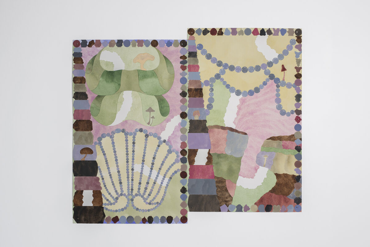 Les Vermiculures constituent un ensemble de gouaches sur papier explorant les méandres de la mémoire à travers le motif de la grotte artificielle. Le terme vermiculure désigne ces tracés sinueux creusés par les larves d’insectes dans le bois ou l’écorce, labyrinthes organiques qui évoquent autant l’érosion que l’inscription.