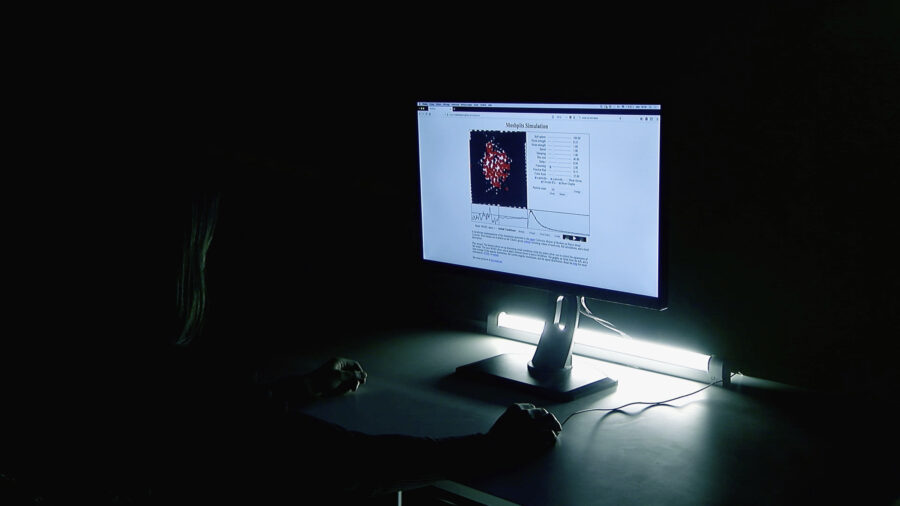 we were so numerous a pour origine la pratique du pogo, conceptualisée comme une représentation mythologique du chaos, ici mise en péril par une considération scientifique du phénomène, de son possible contrôle par des principes de dynamique fondamentale et de mécanique quantique. Construit sur un fonds d’archives vidéo ainsi que des images tournées, l’installation explore les ré- cits mythiques d’individus, confrontés dans l’image aux progrès scientifiques invalidant au fur et à mesure du temps les derniers espaces de libertés anarchiques du pit. we were so numerous est un film sur le contrôle et son possible dépassement par la puissance du récit et des voix.