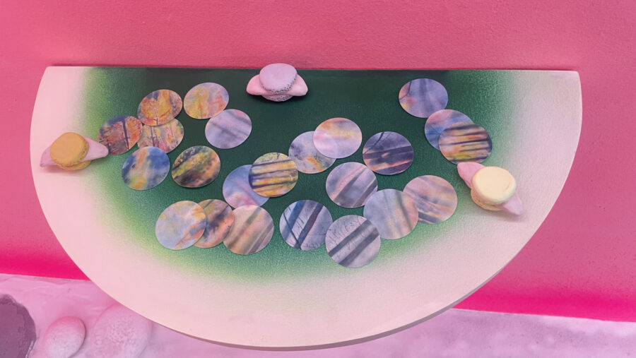 Trois macarons aux couleurs douces fourrés de langues roses est un clin d’œil à l’anthropophagie du film autant qu’à nos corps sacrifiés.
