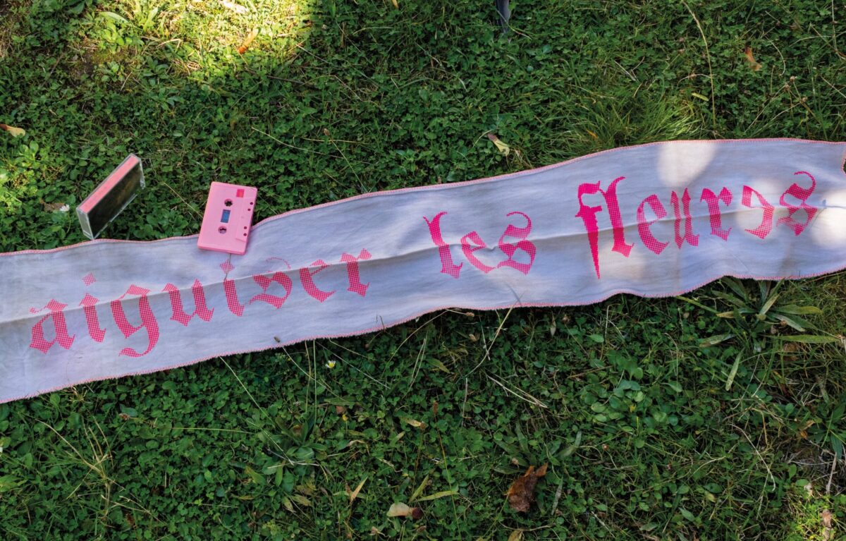La banderole qui enveloppe chaque exemplaire du zine porte une phrase revendicative, réminiscence de l’oeuvre les ruses du serpent cerceau : elle agit comme une épigraphe, une peau supplémentaire autour de la fiction sonore.