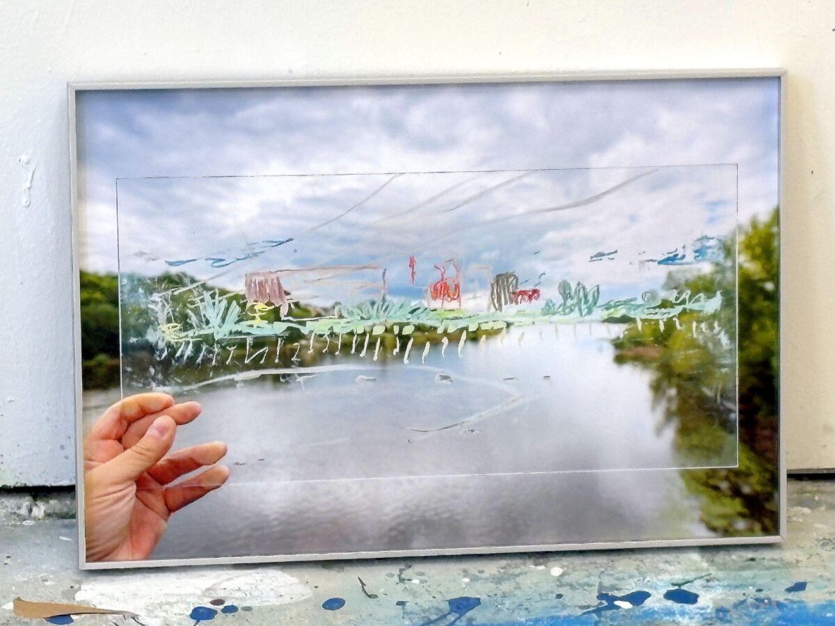 Les eaux, les vapeurs, les panaches, les véhicules, les histoires, gonflés d’une myriade d’affluents, traversent ici plusieurs régions administratives. Aux confins de chacune d’entre elles, que lit-on ? Que se dit-il au passage de l’une à l’autre ? Que se cache-t-il sous les plis des frontières ? Ici, dans l’épaisseur de ce paysage trempé, visité, circulé, se situe certainement un autre monde, que l’on peine à voir, que l’on peine à entendre, un paysage de doute. Cet endroit est difficile à regarder… Tout y est loin, tout y est jurassique, tout y est caché. Alors, doucement, sans bouger, une innombrable foule d’associations d’idées se mue en questions qui ne trouvent aucune réponse, mais qui ouvrent sans le vouloir, sans le chercher, les chemins de traverse dans la profondeur mouillée de cette confluence.